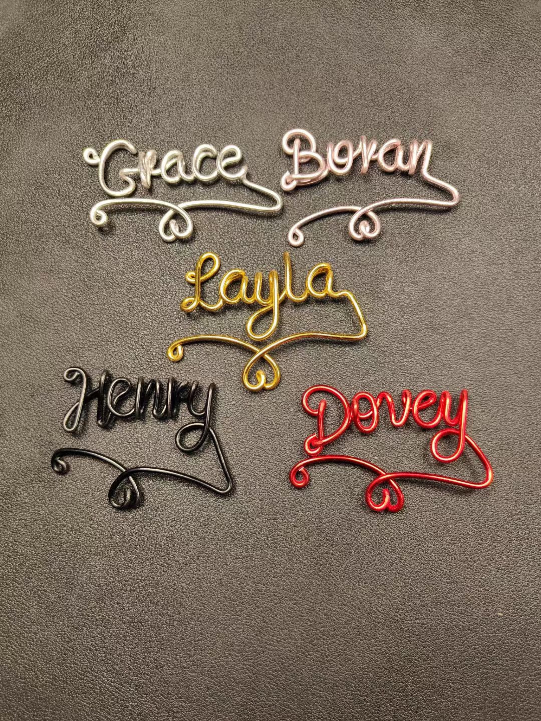 Elegant and minimal, this floating-style name charm hangs gently on the rim of a wine glass. Each piece is handmade from wire and customized with your chosen name — a lovely way to distinguish glasses at weddings, birthdays, or romantic dinners.