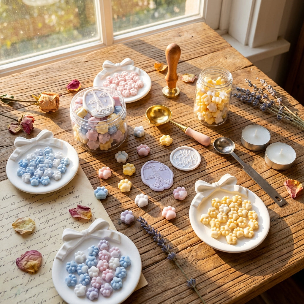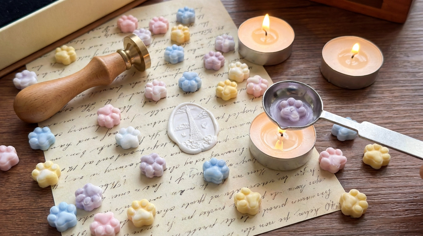 この魅力的な封蝋キットを使えば、美しい封蝋を簡単に作ることができます。愛らしい猫の足の形をしたミックスカラーのペレットワックス、金色のスプーン、ティーライトキャンドル、そしてお好みのスタンプが入っています。グルーガンは不要。心のこもった手紙、結婚式の招待状、そして時代を超えた日記の記録など、このキットはまさにうってつけのアイテムです。