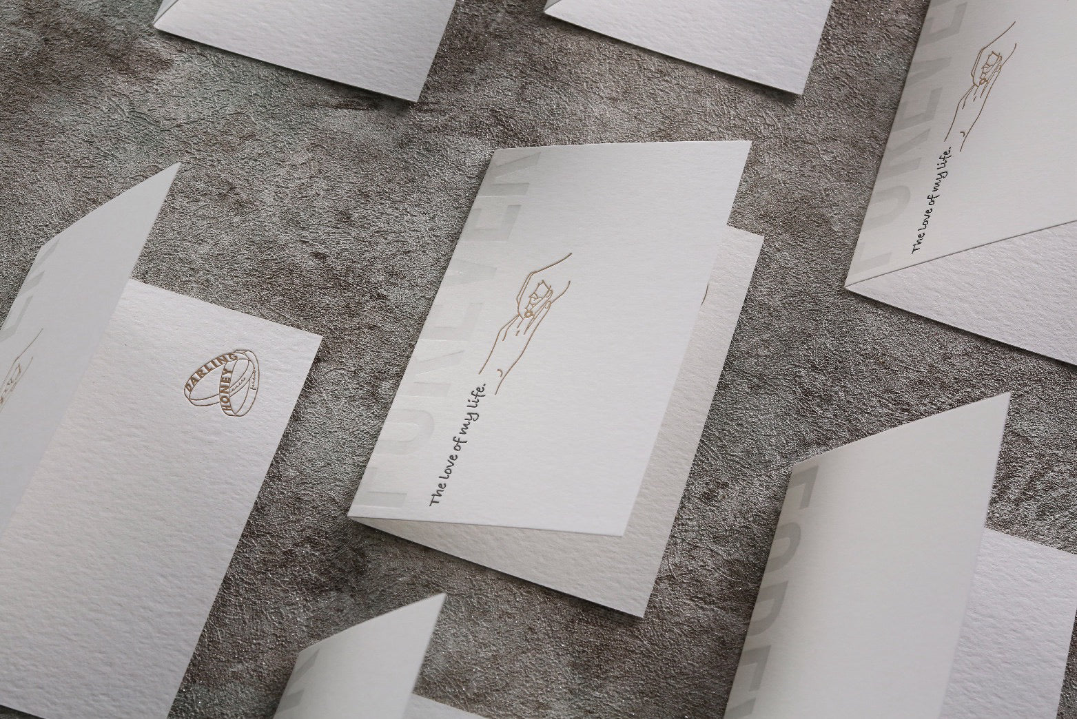 - “The love of my life” phrase with a symbolic ring & hand illustration