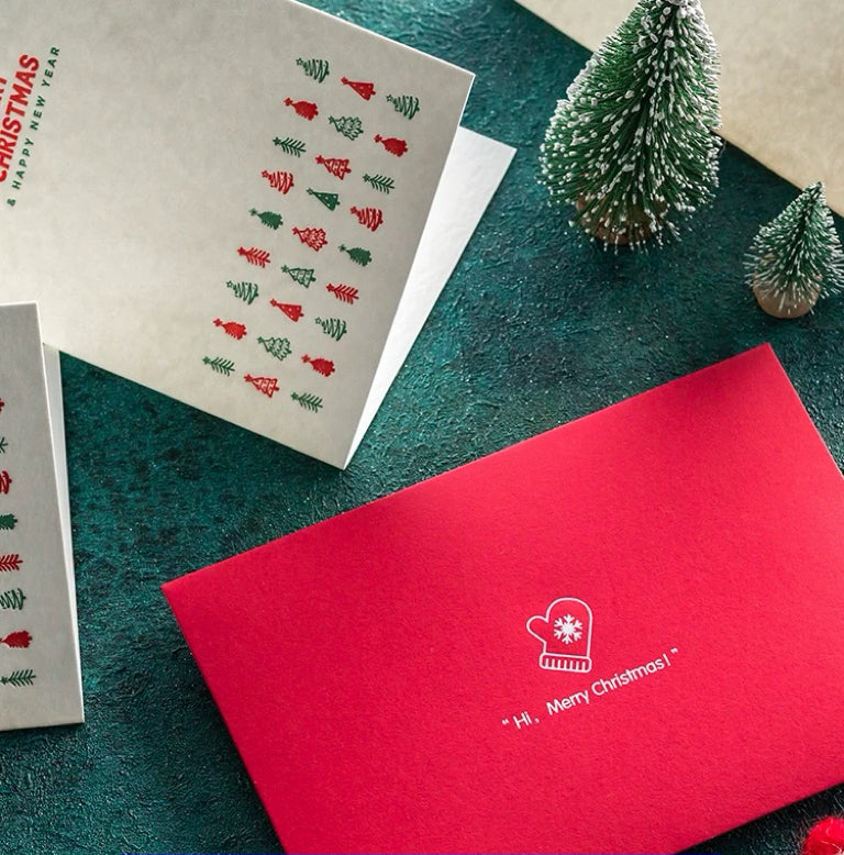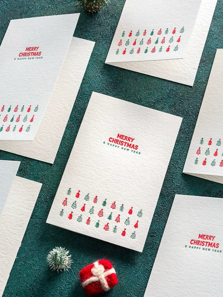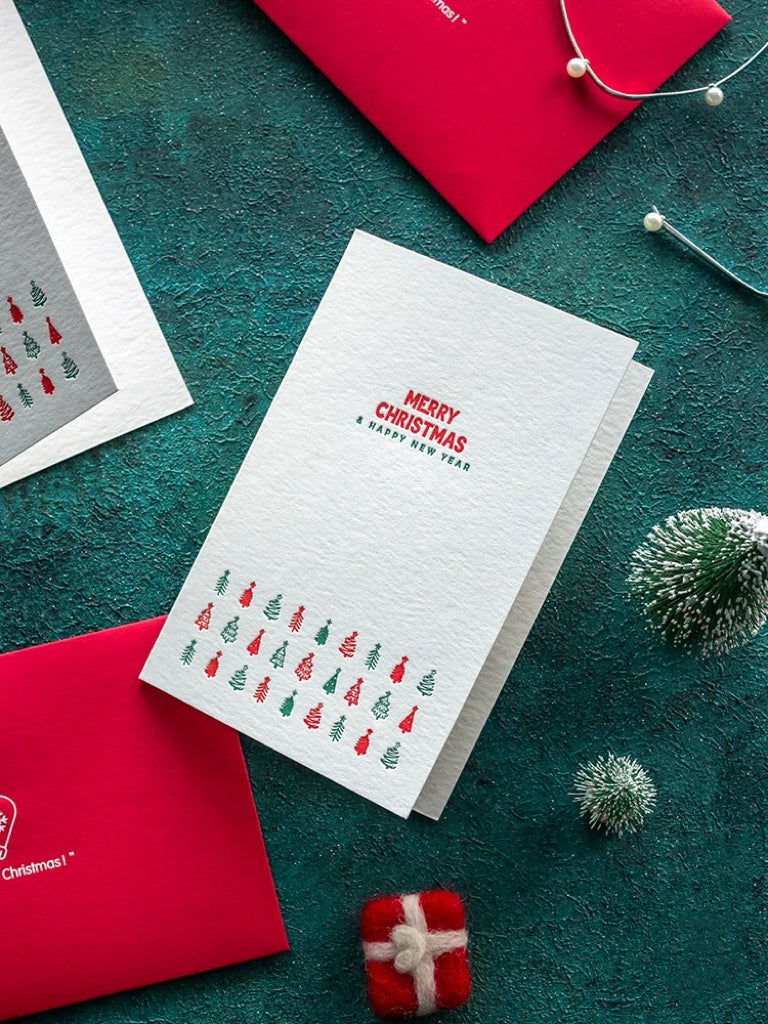 Brighten the season with this red & white Merry Christmas card. Fun mini tree design, red festive envelope, and blank inside for your message.