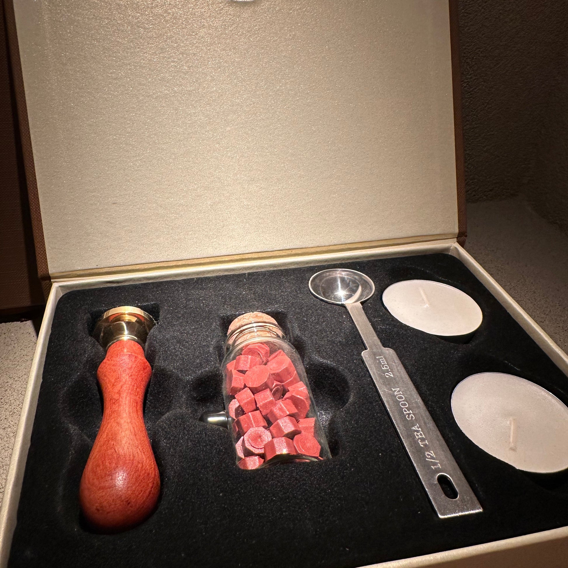 Create beautiful wax seals with ease using this charming sealing kit — featuring colorful pellet wax pieces, a golden spoon, tealight candles, and your choice of stamp. With no glue gun needed, this is the perfect entry point for thoughtful letters, wedding details, or timeless journaling moments.